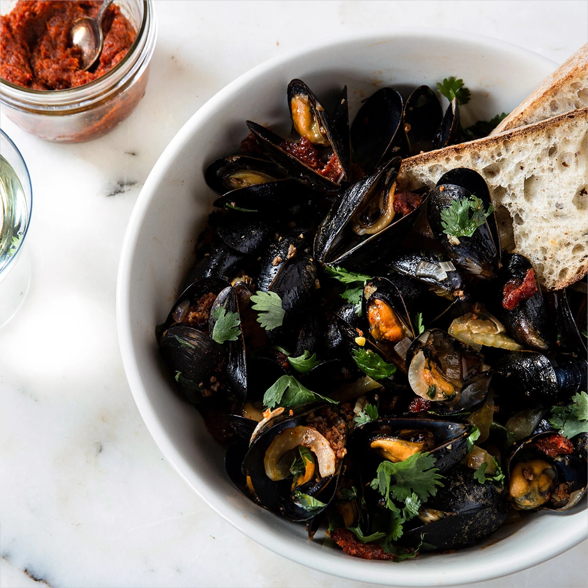 - 2 tbsp extra virgin olive oil bread for sopping up sauce